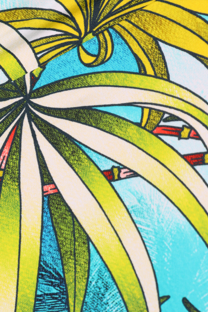 Son imprimé tropical Palm, aux couleurs vibrantes, apporte une touche fraîche et estivale idéale pour illuminer votre tenue de plage.